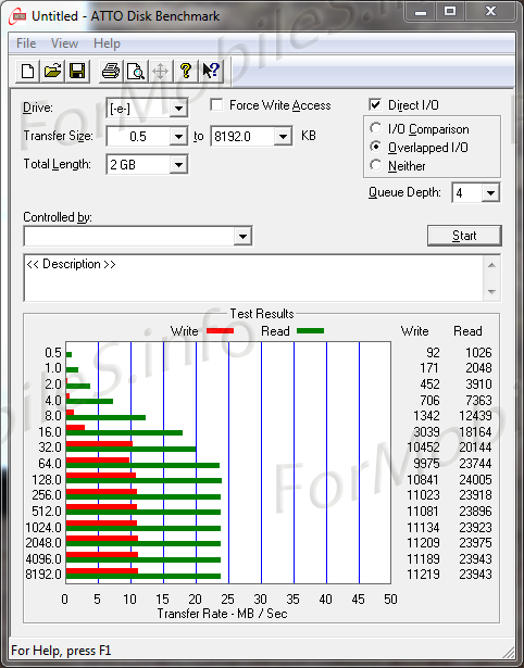 Proseguiamo ora con Atto che ci permette di registrare prestazioni nella media (11/24 MBps in scrittura/lettura) :